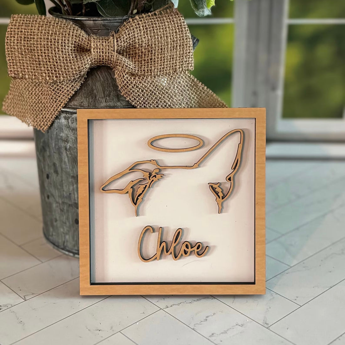 Boho Pet Memorial Decor Framed Dog Ear Drawing Keepsake