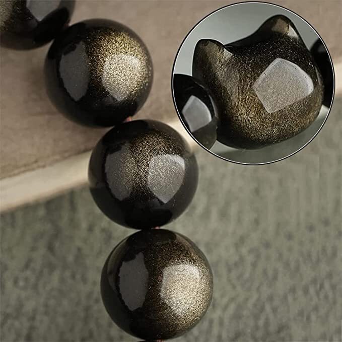 Like the feline predators long revered for their strength and power, obsidian protects its wearer and unleashes the feline spirit within your soul. Shield your heart and mind from negative energy with a stone that was born in the depths of the Earth. With a bracelet of twenty-three beads, your desire to facilitate change and growth will stretch to new heights. And a single bead crafted in the image of a cat and swirled with gold will inspire you to keep sharp and strong like the kitty you so adore.