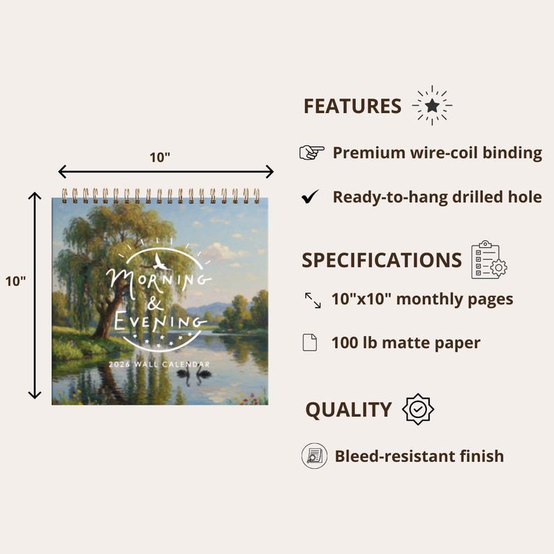Format: Durable wire-coil binding + ready-to-hang drilled hole
