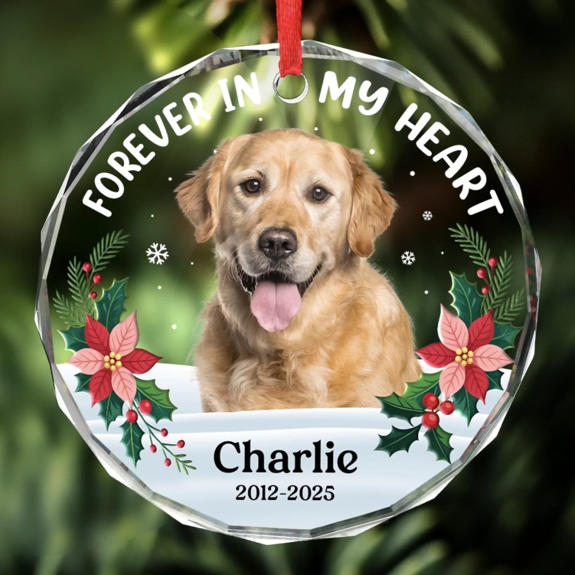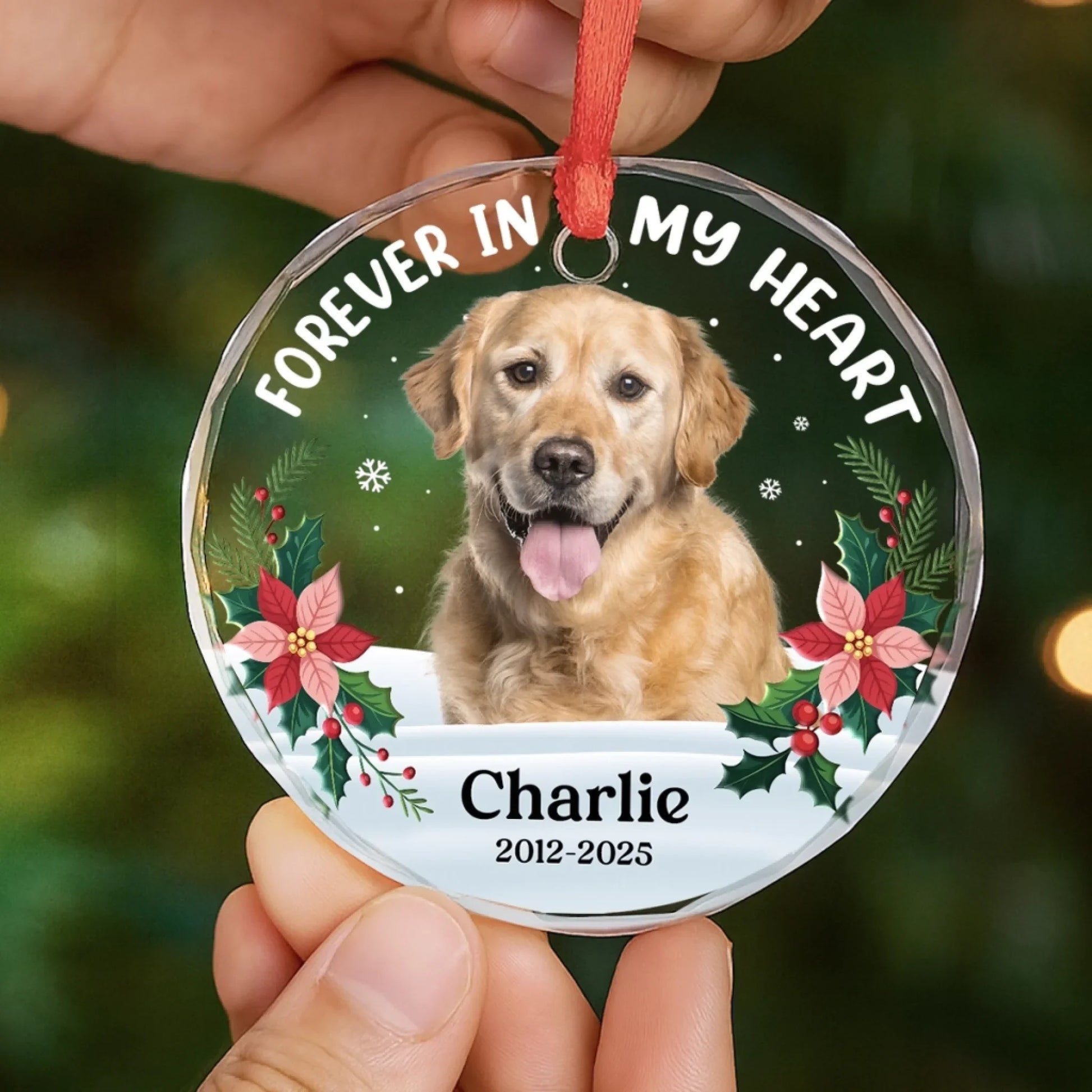 Custom Photo Circle Glass Ornament - Personalized Pet Memorial Sympathy Gifts For Dogs, Cats