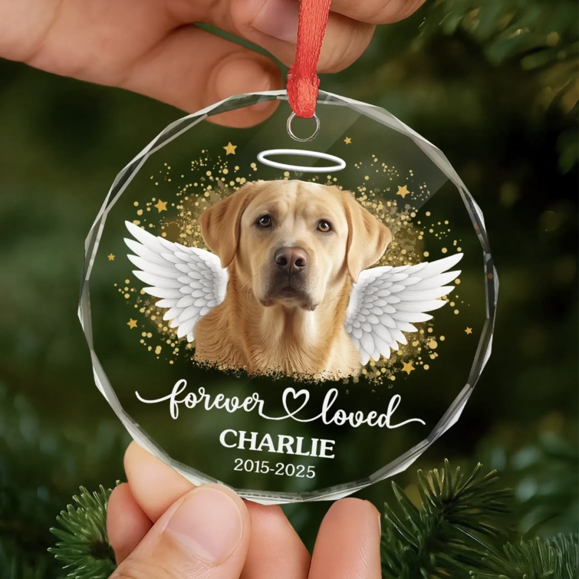 Custom Photo Circle Glass Ornament - Personalized Pet Christmas Memorial Sympathy Gifts For Dogs, Cats