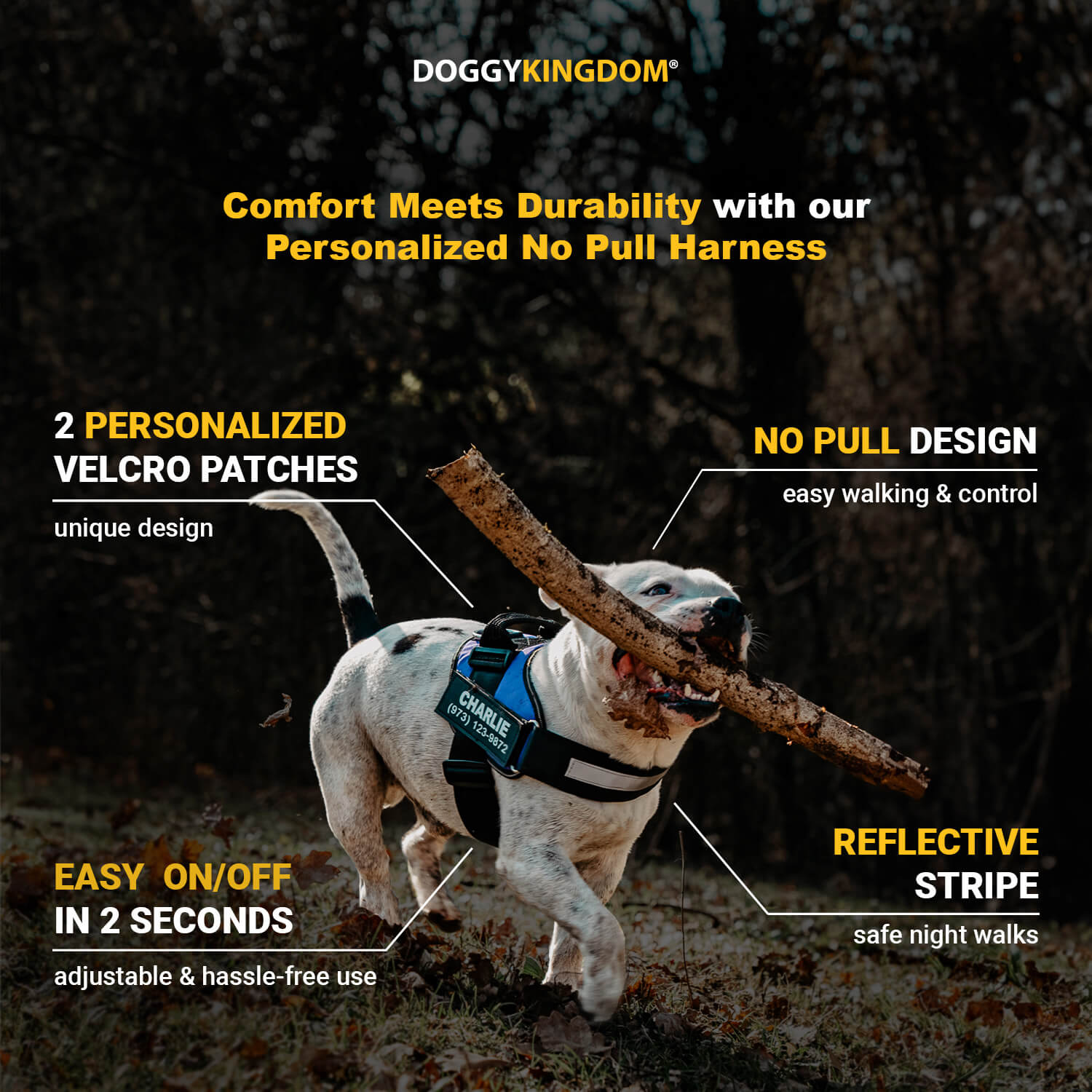 - PERSONALIZE YOUR DOG HARNESS: Add your dog's name and optional phone number for a personalized touch.
