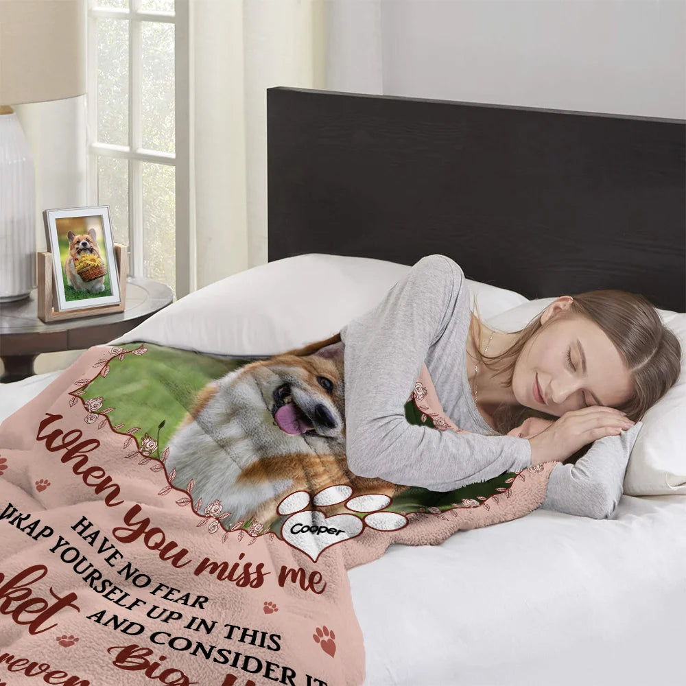 Personalized Miss Me No Fear Paw Print Soft Throw Blanket with Pet Photo and Name